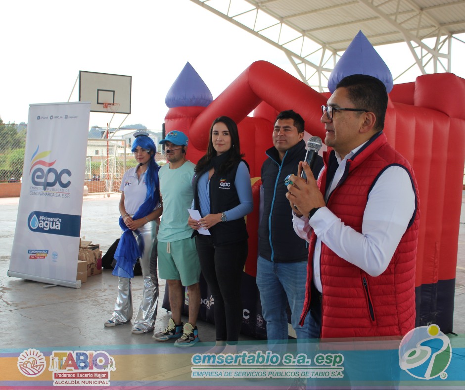 El día 11 de mayo la empresa de servicios públicos EMSERTABIO y la EPC (Empresa De Servicios Públicos De Cundinamarca) presentaron la obra 𝑴𝒖𝒔𝒊𝒄𝒂𝒍 El 𝑪𝒍𝒖𝒃 𝒅𝒆 𝒍𝒐𝒔 𝑨𝒄𝒖𝒂𝒅𝒆𝒇𝒆𝒏𝒔𝒐𝒓𝒆𝒔 a los alumnos miembros de los grupos ambientales de instituciones educativas publicas y privadas del municipio para promover practicas de ahorro y consumo responsable del recurso hídrico. Esto como parte de la conmemoración del día del rio Bogotá y del rio Frio además la secretaria de ambiente y asuntos agropecuarios participo con la entrega de 80 arboles de especies nativas para actividades de reforestación a los docentes de los grupos ambientales participantes.