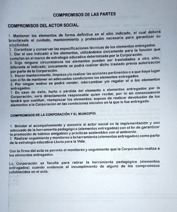 Re: Ejecutar acción administrativa de Articulación del programa ''Lluvia para la vida'' para realización de reservorios durante el cuatrienio.